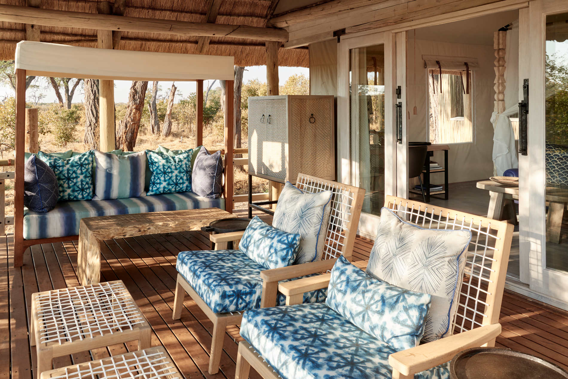 Innen erwartet Sie hochwertiges Interieur mit polierten Holzböden, stilvollen Möbeln, Schreibtisch, Sitzgelegenheiten und zwei großzügigen Dreiviertelbetten unter einem begehbaren Moskitonetz. Eine Klimaanlage, ein Deckenventilator sowie ein Heizkörper sorgen für angenehme Temperaturen – auch an kühlen Savuti-Winternächten, die durchaus unter den Gefrierpunkt fallen können.