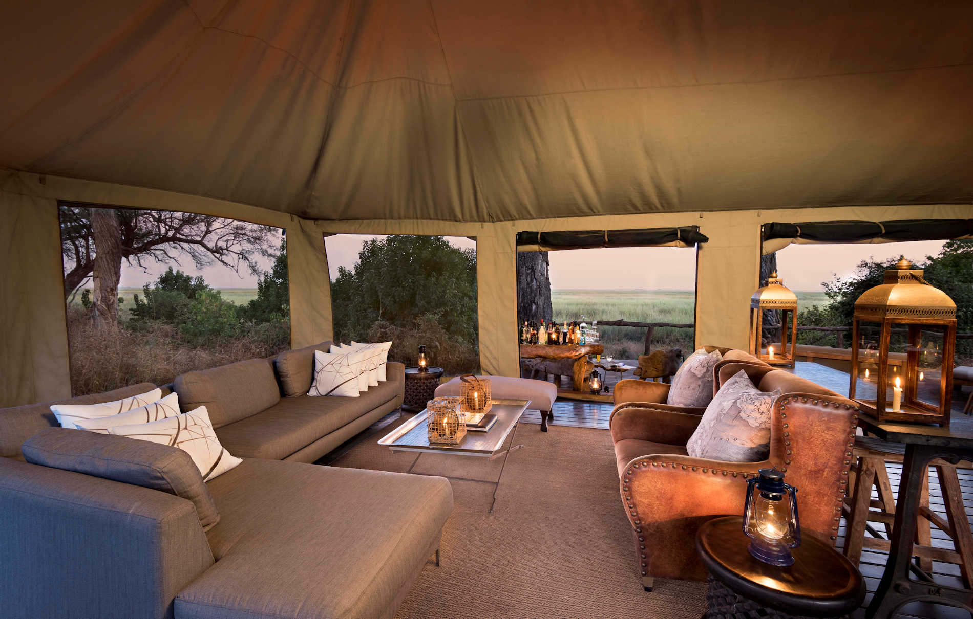 Nach heftigen Regenfällen im Jahr 2008 überschwemmte der Linyanti-Fluss die umliegenden Sümpfe und schuf so die schilf- und grasbewachsenen Sumpfgebiete, die sich vor dem Camp erstrecken. Es ist ein offener Ausblick, und obwohl er nicht an sich schön ist, ist er nur einer von vielen Lebensräumen, die alles anziehen, von farbenfrohen Vögeln und Nilpferden bis hin zu Löwen und Leoparden und Raubtieren wie Rappen-, Pferde- und Kuduantilopen.