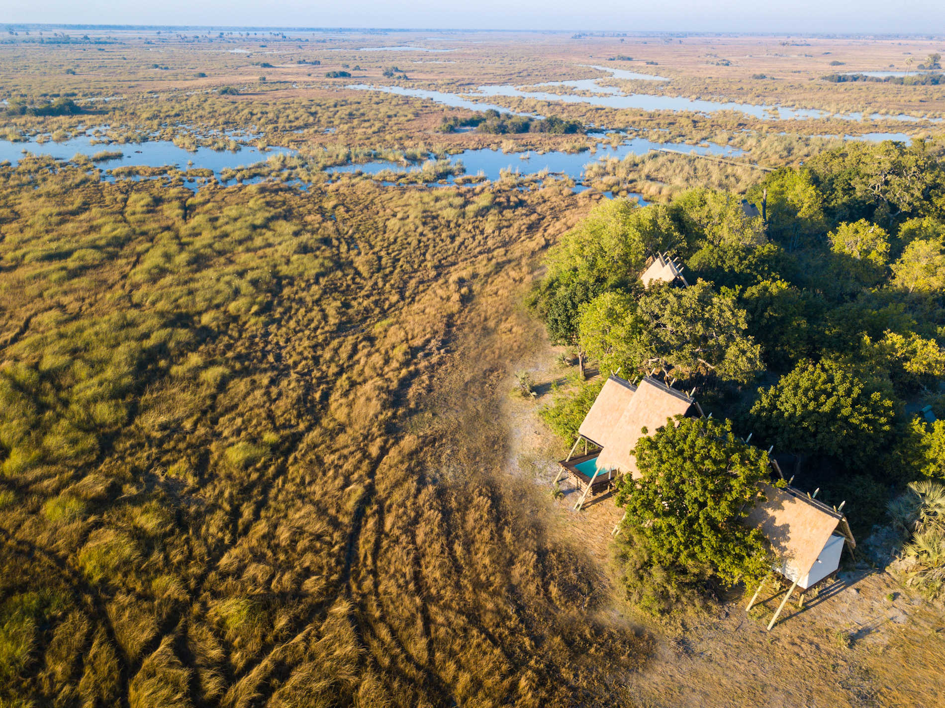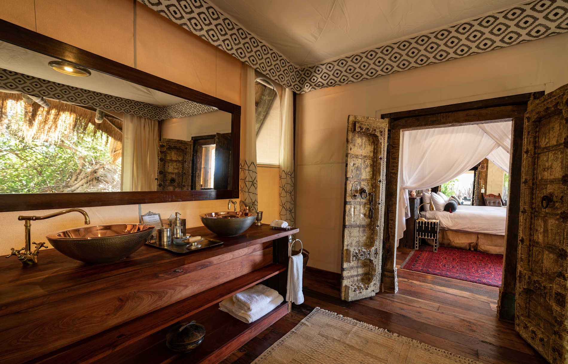 Das Camp verfügt über drei geräumige, strohgedeckte Gästezelte mit großen, eigenen Badezimmern, einer großen privaten Veranda und einem privaten Swimmingpool. Jedes Gästezelt ist einzigartig, mit einer eigenen Farbpalette und einem eigenen Thema gestaltet. In einigen Kulturen gibt es ein fünftes Element, das “Metall”, das ebenfalls in die Gestaltung einbezogen wird. Jeder Raum wertet das auf, was Livingstone gehabt hätte, womit er gereist wäre und was er gefunden hätte. Aber darüber hinaus kehren wir zum Robinson-Crusoe-Gefühl zurück, einschließlich der Texturen von Seilen, Räumen unter Stroh, Hängematten, viel Platz, nautischen Elementen und geborgenem Holz.