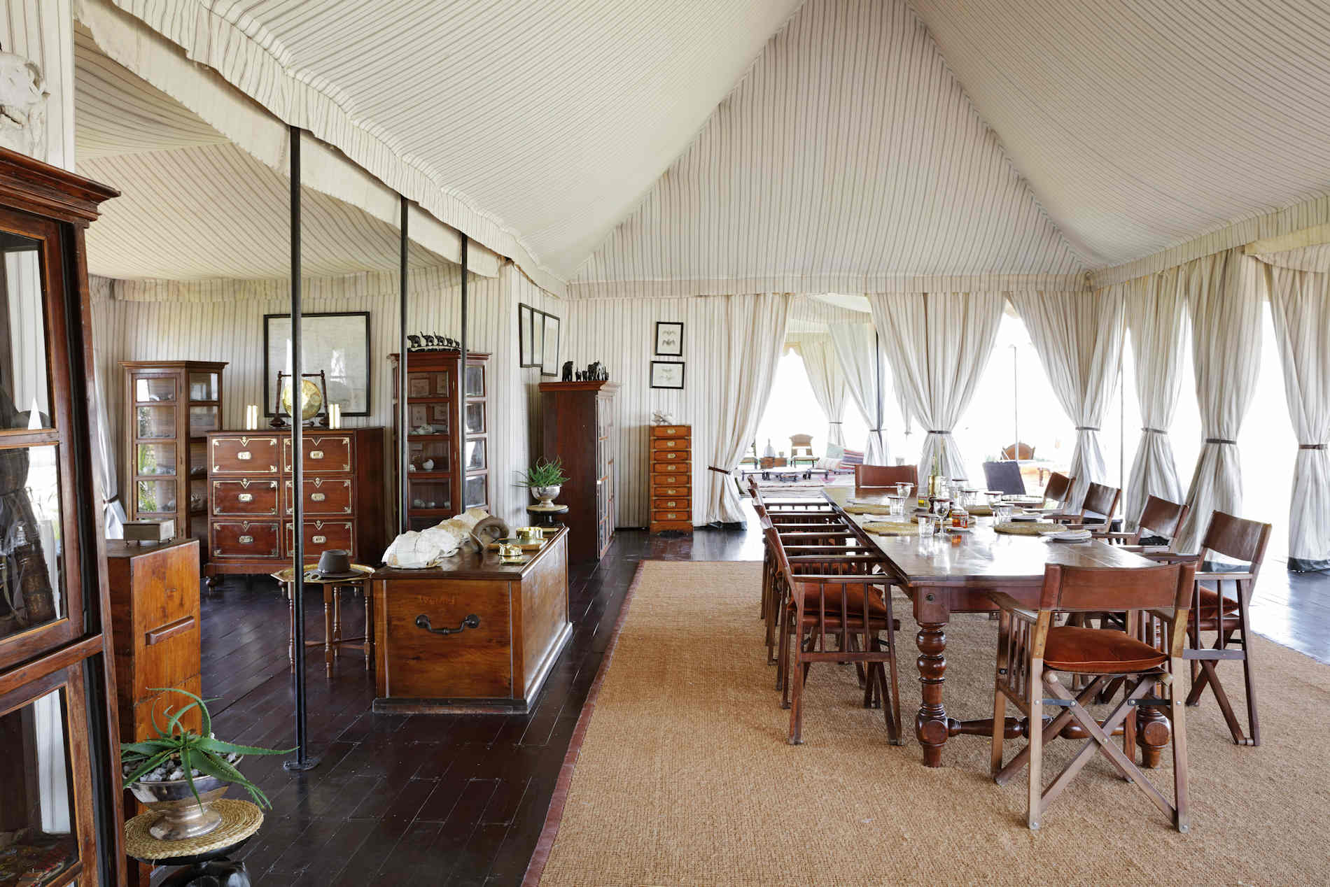 Im Einklang mit dem Gefühl einer vergangenen Ära ist die Beleuchtung einfach (und schummrig), mit traditionellen alten Spirituslampen. Große Mesh-Fenster sorgen für einen freien Luftstrom (ideal bei hohen Temperaturen), und für die kühleren Wintermonate können die Klappen heruntergelassen werden. Jedes Zelt hat auch eine Veranda mit einem bequemen Tagesbett und ein paar Regiestühlen.