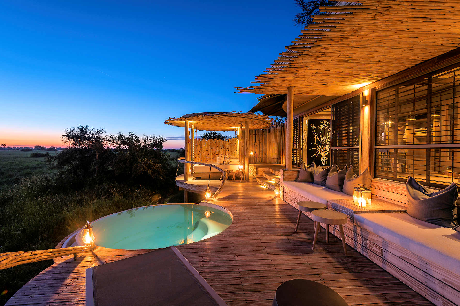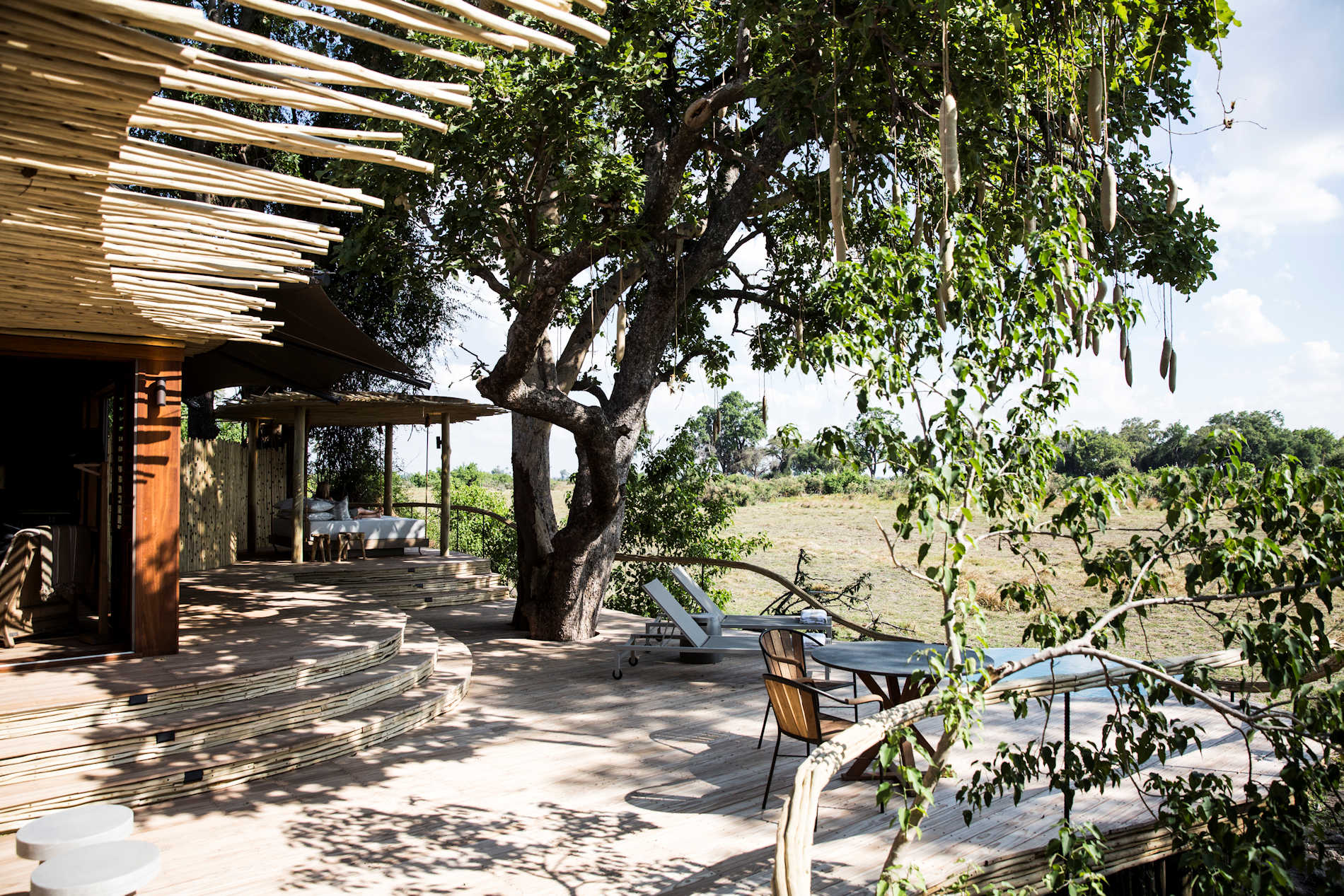 Little Mombo wurde unter einem schattigen Baldachin aus Jackalberry- und Würstchenbäumen erbaut und liegt auf derselben Insel wie Mombo, mit Blick auf ein Überschwemmungsgebiet, das eine erstaunliche Vielfalt an Wildtieren beherbergt; der Überfluss an Wildtieren in dieser Gegend hat ihr den Namen “Place of Plenty” eingebracht. Die Abgeschiedenheit von Little Mombo und die große Vielfalt an geeigneter Vegetation machen das Gebiet zu einem idealen Ort für engagierte Naturschutzbemühungen, um sicherzustellen, dass die unberührten Lebensräume und die dichte Tierwelt auch für künftige Generationen erhalten bleiben.