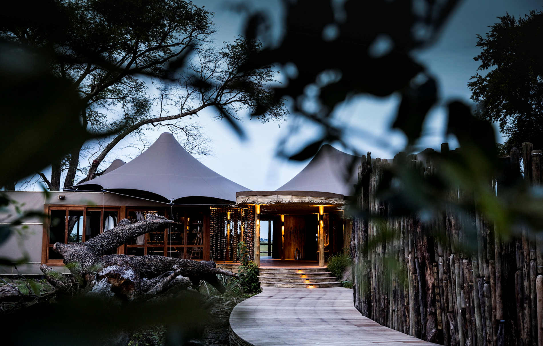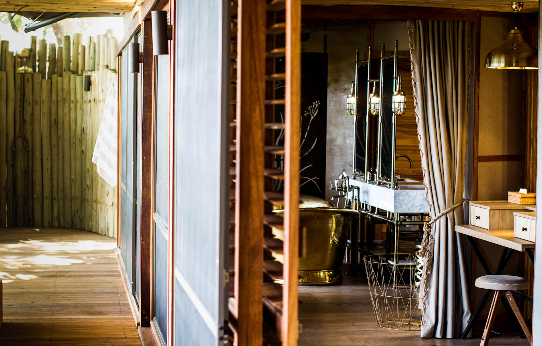 Die Zelte bieten einen weiten Blick über eine Aue, in der es von Wildtieren wimmelt. Wohnzimmer, separates Schlafzimmer und Bad, Innen- und Außendusche und Badewanne mit Kupfer- und Messingarmaturen tragen zum Ideal des verantwortungsvollen Luxus von Wilderness Safaris bei.