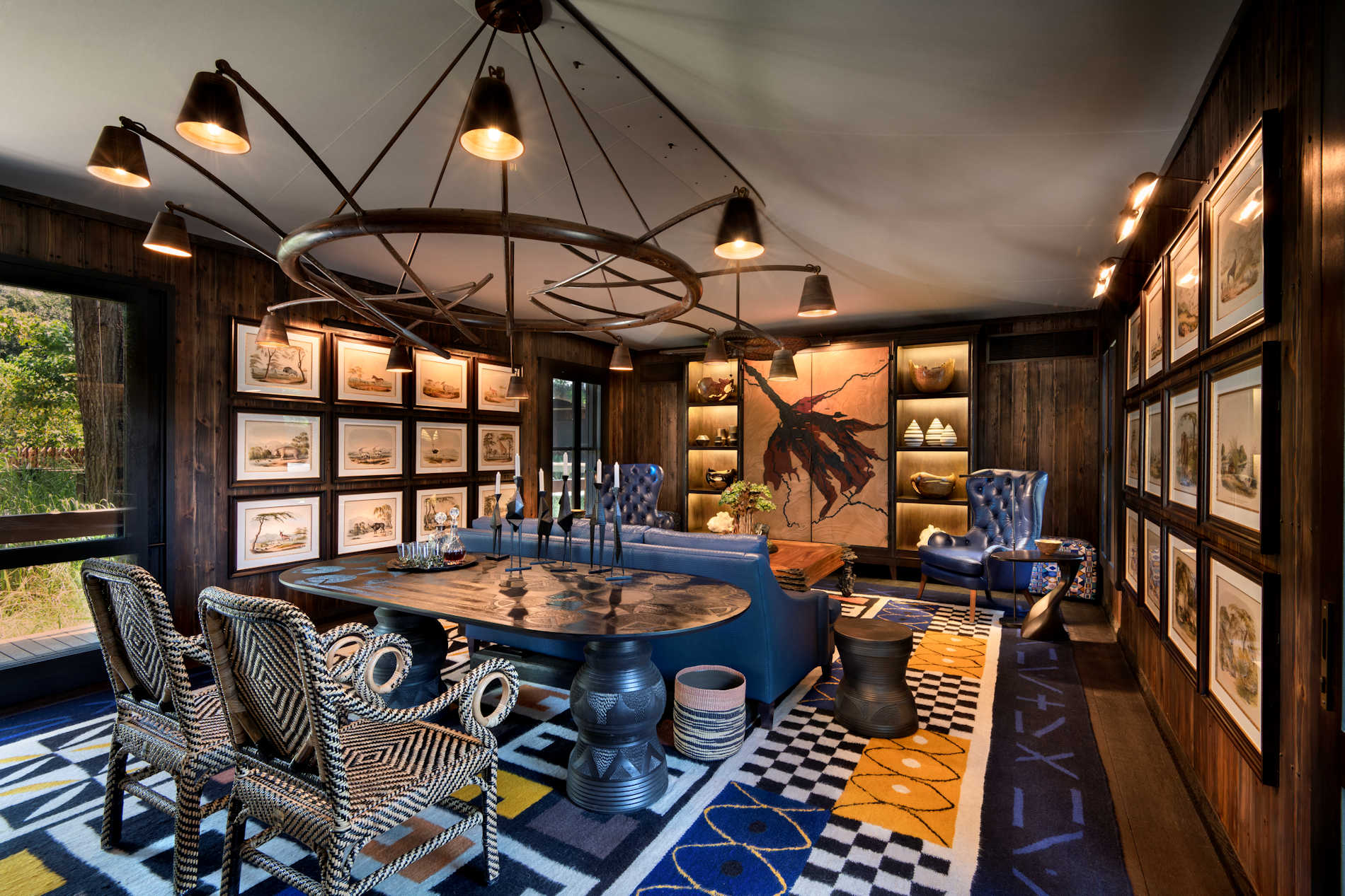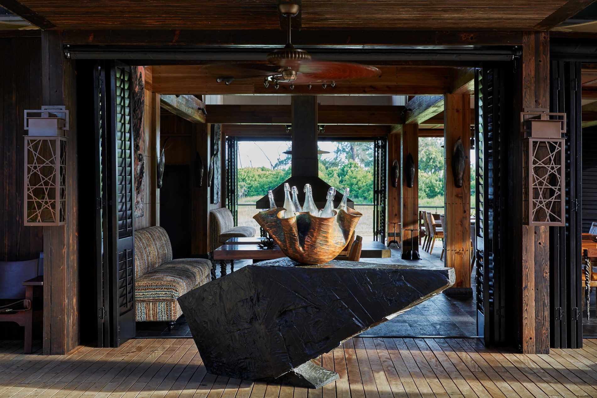 Die Lodge wurde sorgfältig entworfen, um die atemberaubenden Auen und Flusswälder zu umrahmen und steht in völliger Synergie mit ihrer Umgebung. Die geräumigen Suiten mit ihrer Holzverkleidung blicken auf mit Seerosen gefüllte Lagunen und die Innenräume sind mit außergewöhnlichen Kunst- und Designobjekten gefüllt, die von Afrikas weltweit bekanntesten Künstlern in Zusammenarbeit mit der preisgekrönten Galerie Southern Guild geschaffen wurden – von glänzenden, handgeschmiedeten Kupfer- und Stahlkonsolen von Conrad Hicks bis hin zu den taktilen Kreationen von Adam Birch, die direkt vor Ort hergestellt wurden.
