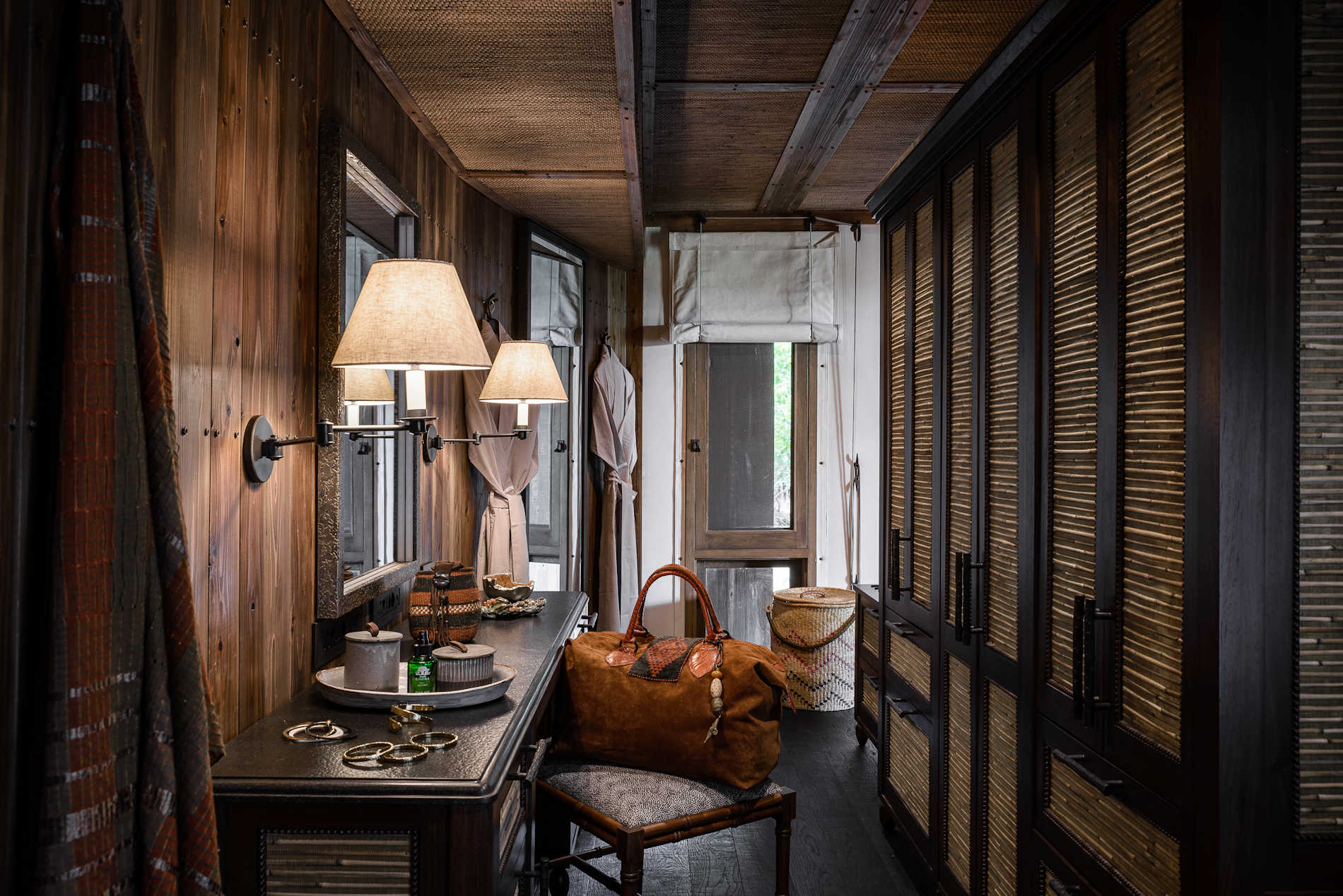 • Jede Suite verfügt über ein eigenes Bad mit separater Toilette, Dusche, Badewanne und Außendusche, einen separaten Wohn-, Schlaf- und Ankleidebereich, Moskitonetz, Kaffee- und Teezubereitungsmöglichkeiten und eine Minibar, • Privates Deck mit Außenpavillon, • Zeltdächer aus Segeltuch und Holzdecks, die über erhöhte Holzstege erreichbar sind, • Getönte Glasfenster für gleichmäßige Temperaturen im Raum (können geöffnet werden, um die Brise und den Vogelgesang hereinzulassen), • Vollständig klimatisiert, • TV und Wi-Fi, • Ökologisch sinnvolle Annehmlichkeiten und jeder erdenkliche Komfort.
