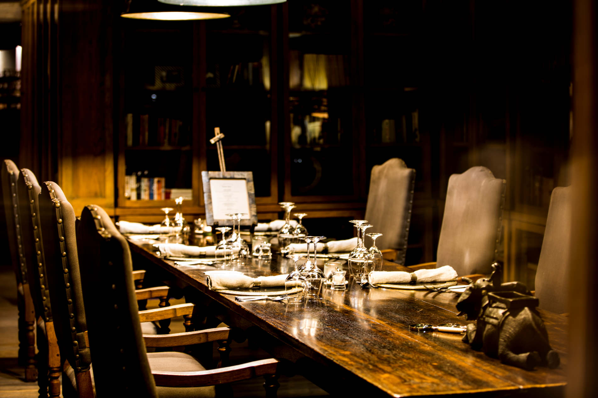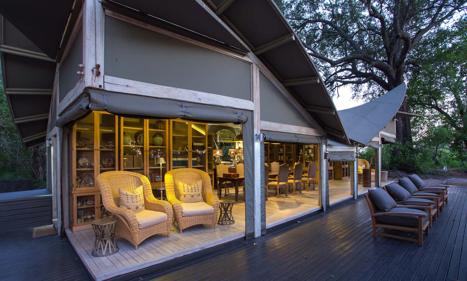 Der Bereich, in dem die Mahlzeiten eingenommen werden, befindet sich auf einem Teakdeck, das um afrikanische Ebenholz- und Feigenbäumen herum gebaut wurde. Ein erfahrener Safarikoch verwöhnt Sie mit ausgezeichneten Speisen für jeden Geschmack und jede Diät. Auch die Drinks zum Sonnenuntergang und die Cocktails werden im Schatten der majestätischen und alten Bäume serviert.