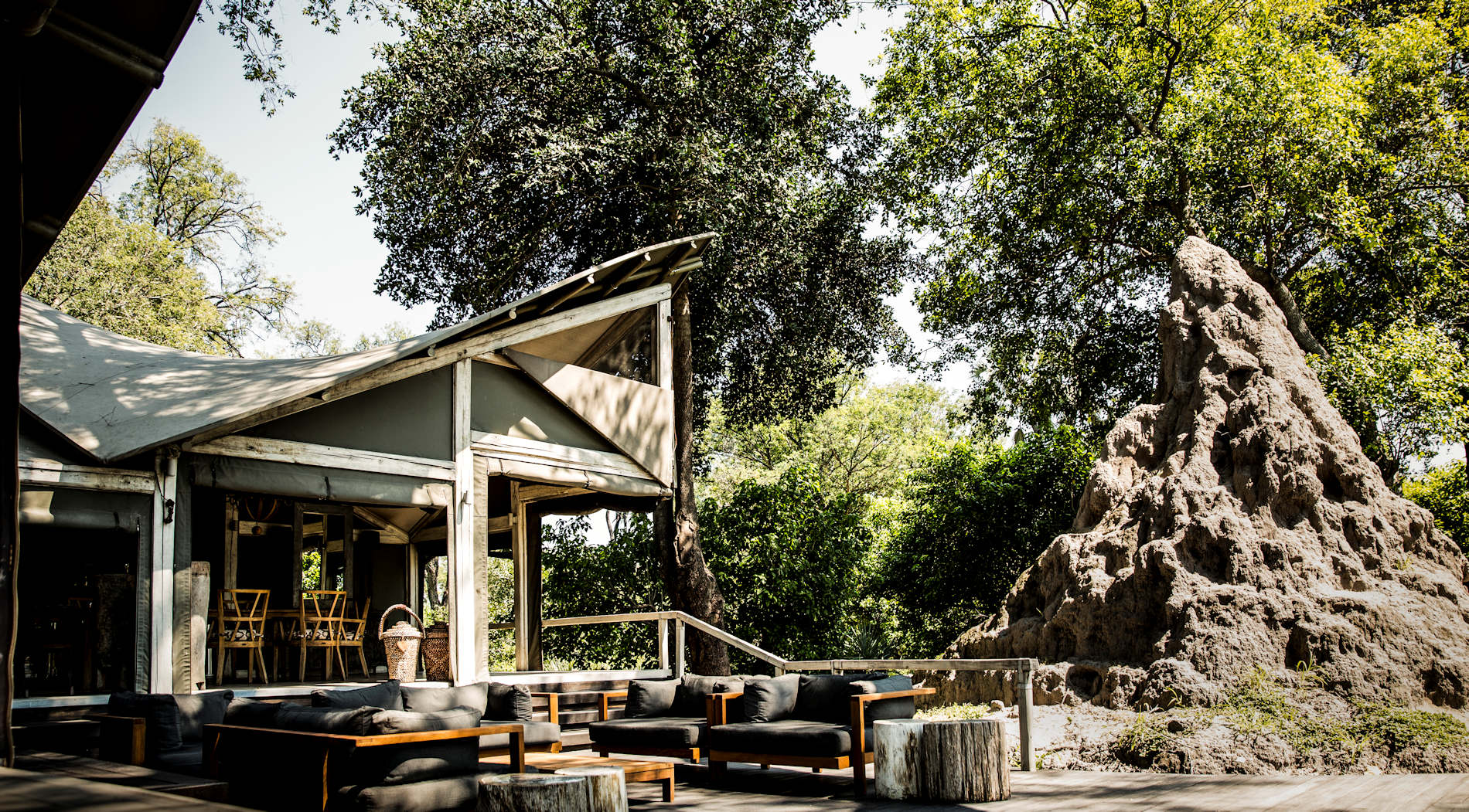 Das Aufenthaltszelt (das Lounge Tent) ist der ideale Platz zum Entspannen in bequemen Sitzgelegenheiten. Eine gut ausgestattete Bibliothek steht Ihnen ebenso zur Verfügung wie die Bildbände über Afrika. Zahlreiche Bilder von Abu und der Elefantenfamilie sind ausgestellt. Überhaupt beherrschen Elefanten die Dekoration, angefangen von Stücken in den Bädern bis zu geschnitzten Elefanten auf den Speisetischen. Ob Sie nun die Atmosphäre des Buschs von der Veranda Ihres Zelts genießen wollen oder lieber mit den anderen Gästen und den Rangern Ihre Erlebnisse am Feuer austauschen möchten, Abu Camp ist ideal für eine einmalige und unvergessliche Safari!