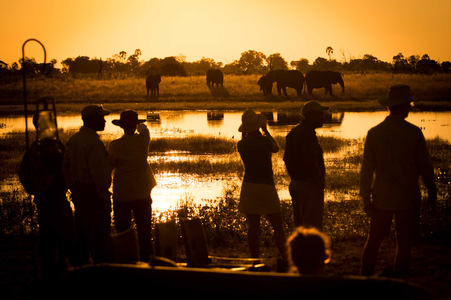 Das Abu Camp im Westen des Deltas ist die Basis der Elefanten-Safaris. Es befindet sich in einem großen privaten Schutzgebiet, einer unberührten, von kristallklarem Wasser durchflossenen Wildnis, die in ihrer Ruhe und Schönheit geradezu paradiesisch anmutet. Das Camp, das inmitten des offenen Graslandes, in der Nähe von Tieren Schutz gebenden Inseln und Papyrus gesäumten Kanälen liegt, ist der perfekte Ausgangspunkt, um das großartige und geheimnisvolle Delta auf dem Rücken der Elefanten zu erkunden.