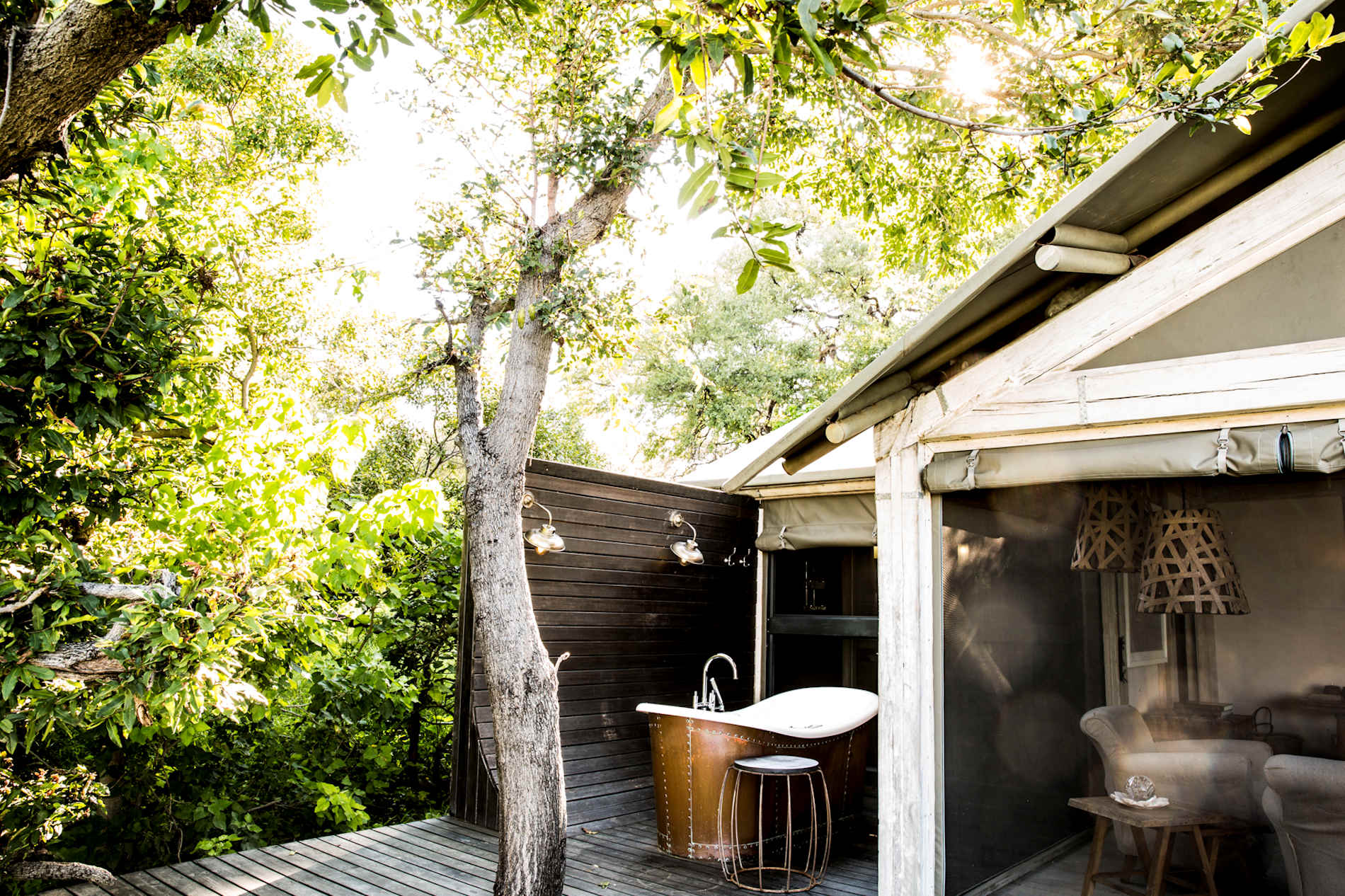 Das Abu Camp liegt auf einem 400.000 Acre großen, privaten Grundstück im Herzen des Okavango Deltas. Das Camp besteht aus sechs luxuriösen Zelten, die unter einem Schatten spendenden Schutzdach in Flussnähe errichtet wurden. Das Camp ist von alten, zauberhaften Bäumen umgeben. Alle Zelte haben eine private Terrasse, von der aus man die Lagune beobachten kann und sind in einem wunderschönen, einzigartigen Stil eingerichtet. Jedes Zelt hat sein eigenes Badezimmer mit einer Dusche und einer Badewanne.