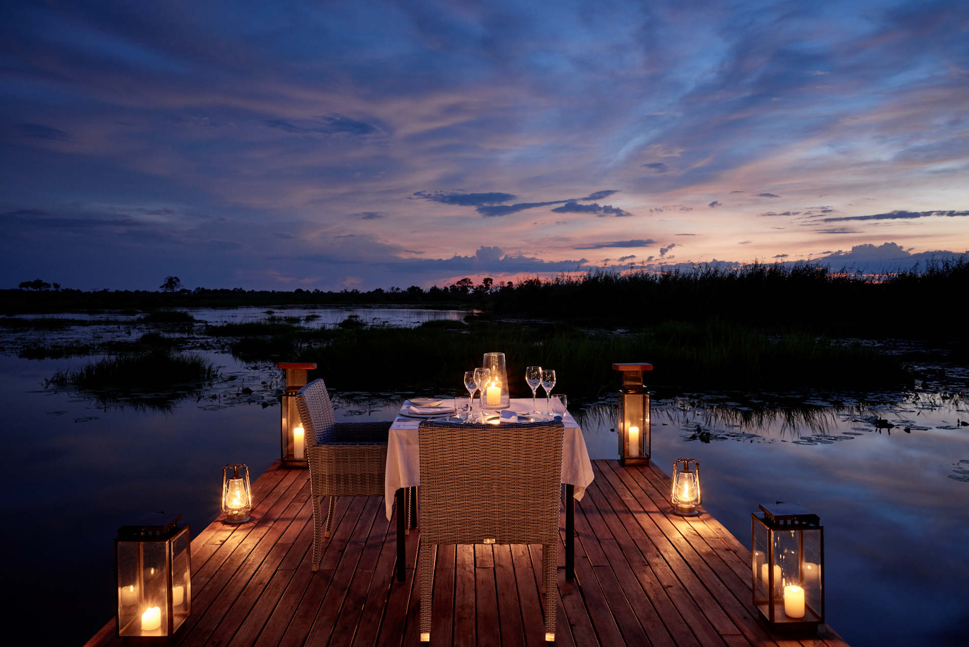 Das Gebiet, das sich in einer privaten Konzession in der Nähe von Moremi befindet, bietet sich für außergewöhnliche Beobachtungen von allen Tieren und der Vogelwelt an. Gäste können die Gegend zu Wasser und zu Land erkunden, oftmals auch spät abends, um die nachtaktiven Tiere zu beobachten. Da das Camp ständig von Wasser umgeben ist, eröffnet sich eine neue Welt von Pirschfahrten. Genießen Sie die Ruhe in einem Mokoro oder schneller in einem Motorboot.