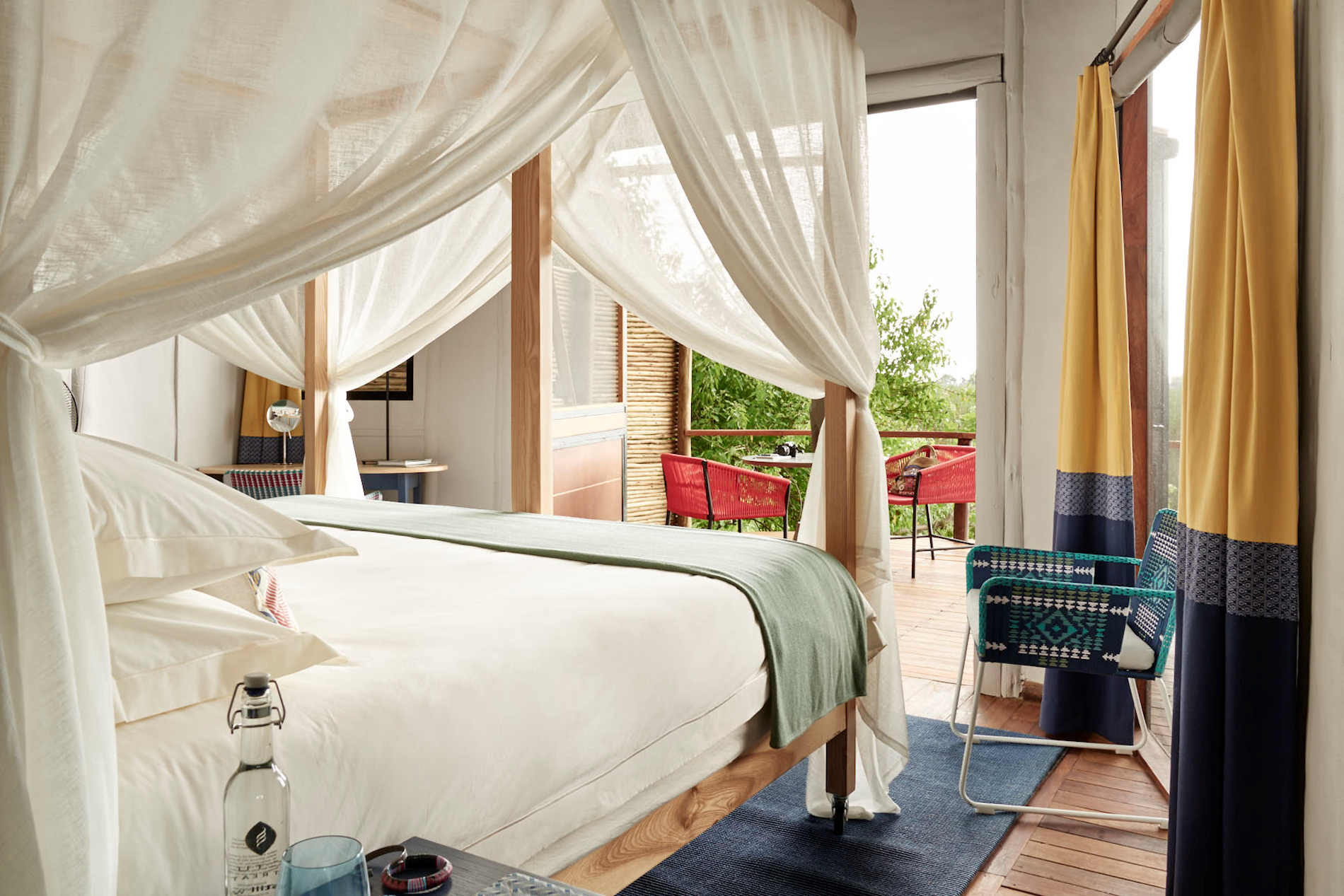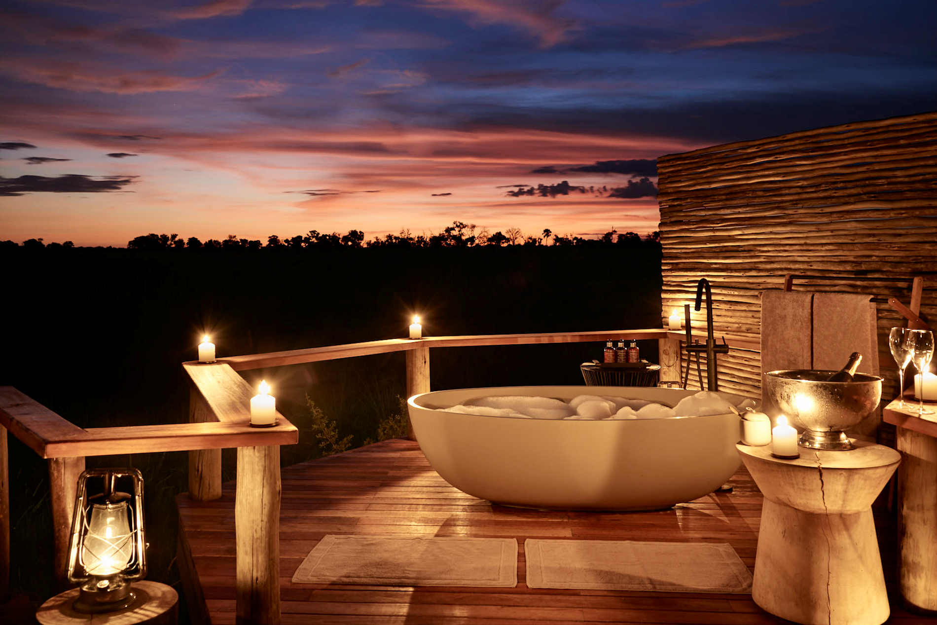 Baines Camp verfügt über 5 erhöht gebaute luxuriöse Suiten. Von den Holzdecks haben Sie einen atemberaubenden Blick auf den Boro Fluss sowie die Lagune die von Leben nur so wimmelt. Die erhöhten Suiten verfügen über einen geräumigen Schlafraum, der mit Stoffen eingerichtet ist, die an eine vergangene Zeit erinnern. Die Betten sind mit Rollen versehen, so dass Sie die Wahl haben, ob Sie lieber innen oder unter den Sternen schlafen möchten. Diese exklusive Lodge verdankt ihren Namen dem berühmten Entdecker und Künstler aus dem 19. Jhd – Thomas Baines. Die Main Area verfügt über eine ausladende Terrasse, die für Mahlzeiten genutzt wird und einen Ausblick auf die Lagune und den Swimming Pool mit Sonnendeck bietet.24 h Elektrizität wird von leisen Generatoren und Batteriesystemen garantiert.