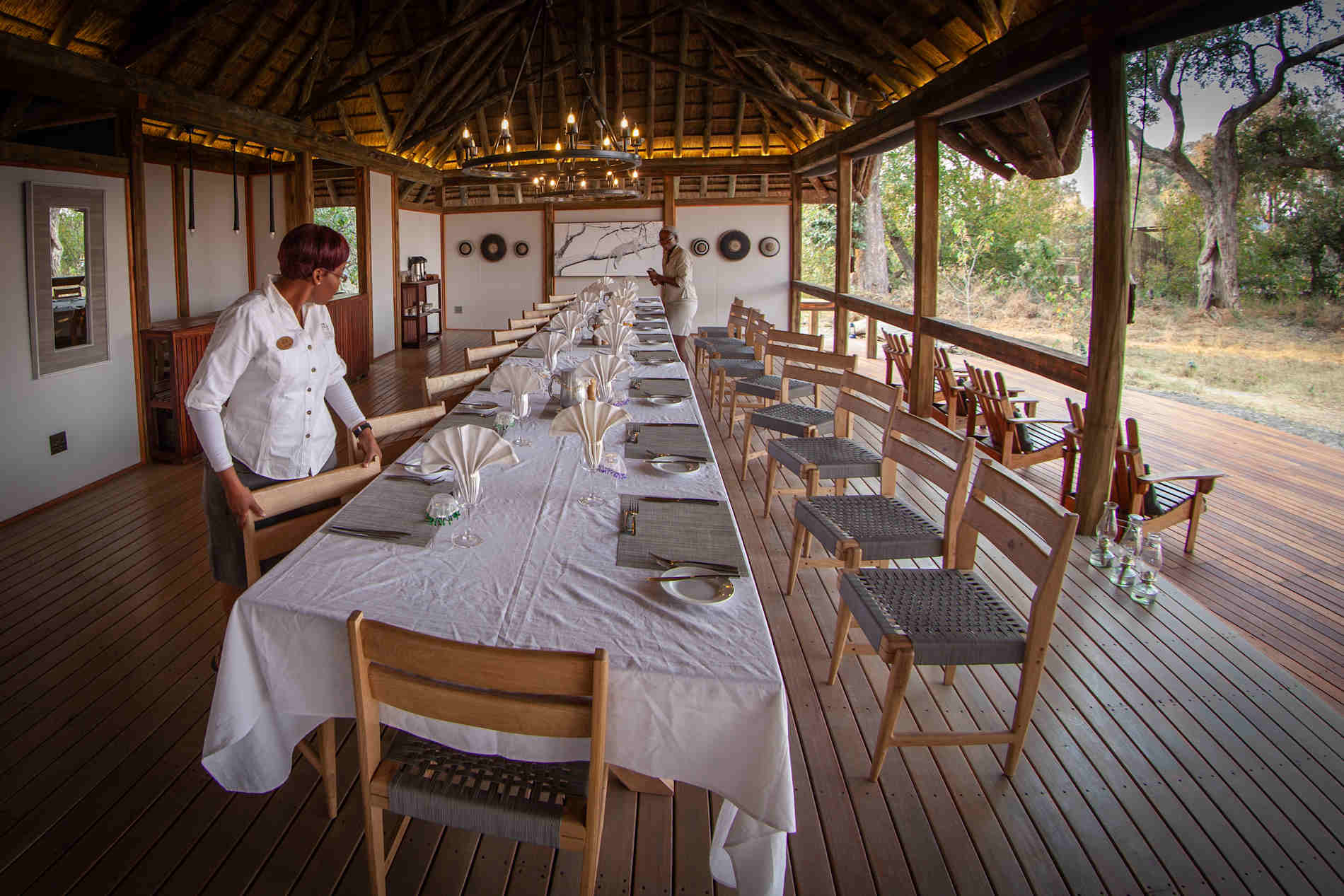 Das Camp liegt zwischen vielen Bäumen mit Blick auf ein Wasserloch, welches gute Tierbeobachtungen ermöglicht. Das Camp hat eine atemberaubende Lage im privaten Kwara Reservat. Es erstreckt sich über eine Fläche von 175 000 ha.