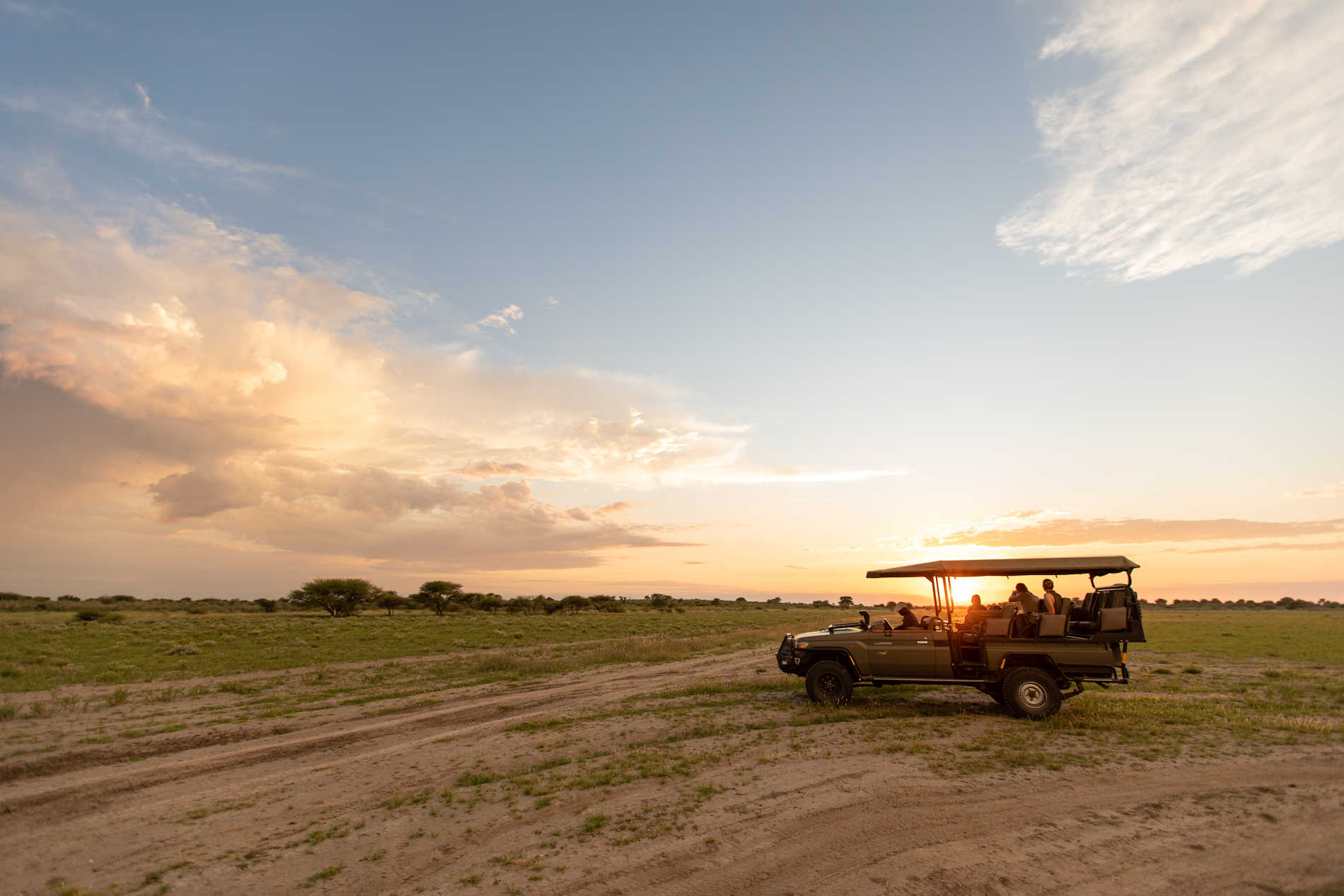Während der Trockenzeit (April – Oktober) scheint das hüfthohe, goldene Gras endlos und ist mit kleinen Bäumen und Büschen gesprenkelt. Weite und leere Pfannen erscheinen als riesige, flimmernde Flächen und manchmal lassen Fata Morganas die knochentrockene Oberfläche wie riesige Seen aussehen. Nachts dominiert der unglaublich schöne Sternenhimmel das Land und verzaubert seine Gäste.