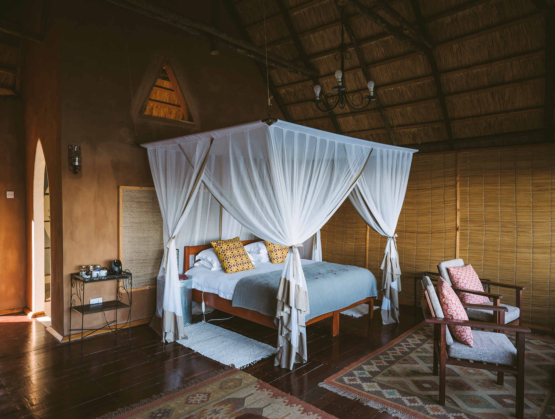 Eingebettet unter Ebenholz- und Marulabäumen sind die geräumigen, strohbedeckten 9 En-Suite -Zelte der perfekte Ort, um sich tagsüber zu entspannen und die Atmosphäre zu genießen, während man über die Lagune in Richtung Namibia schaut. Jedes Zelt hat ein Deck mit bequemen Liegestühlen. Durch eine Schiebetür gelangt man in den versunkenen ... Weiter zu: Lagoon Camp